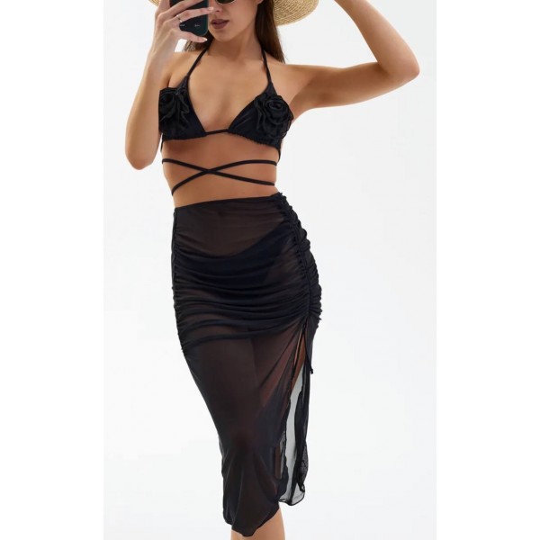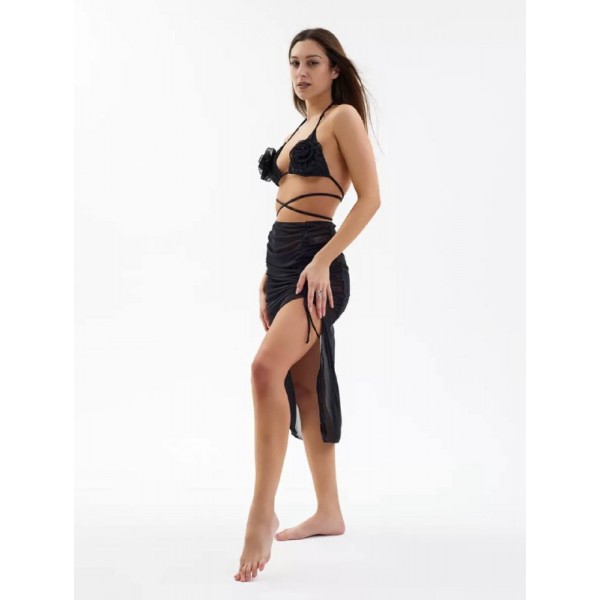 Раздельный купальник из 3-х единиц : трусики танго, лиф с поролоновой съемной чашкой, юбка.